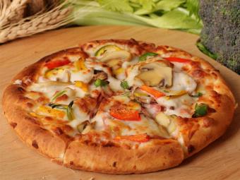 خمير آمريكايي ، سس مخصوص ، ذرت ، نخودفرنگي ، قارچ طعم دار ، فلفل دلمه اي ، پنير مخصوص